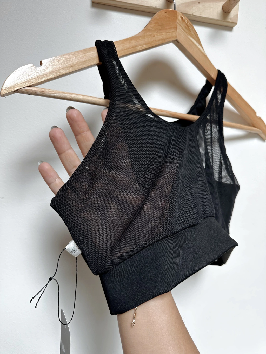 Na frente, a malha suplex proporciona ajuste perfeito no corpo, enquanto o verso em tule de malha garante ventilação e leveza.